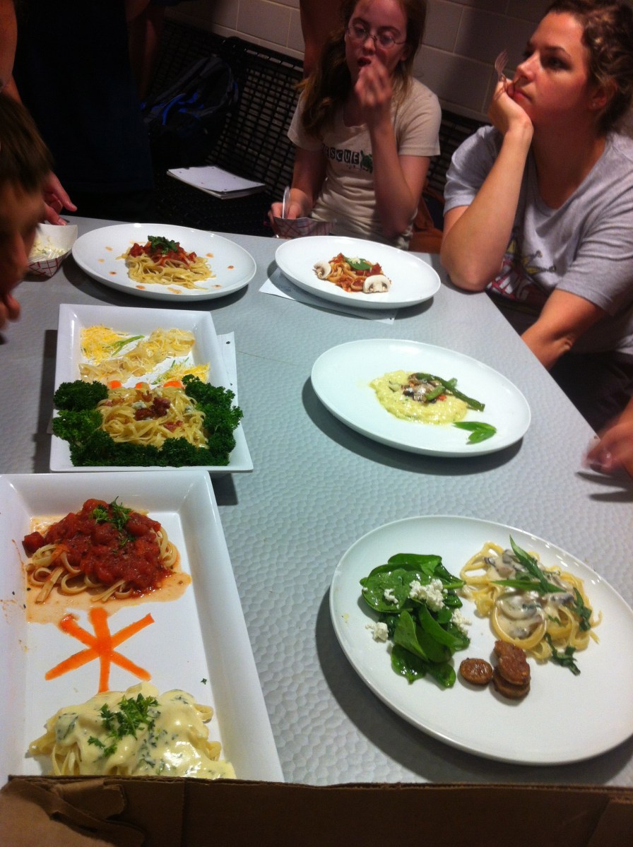 My dish is the top right, and the Mrs. Harrison is sitting to the right. Emily, one of the TAs who didn’t hide, is directly behind the plate.